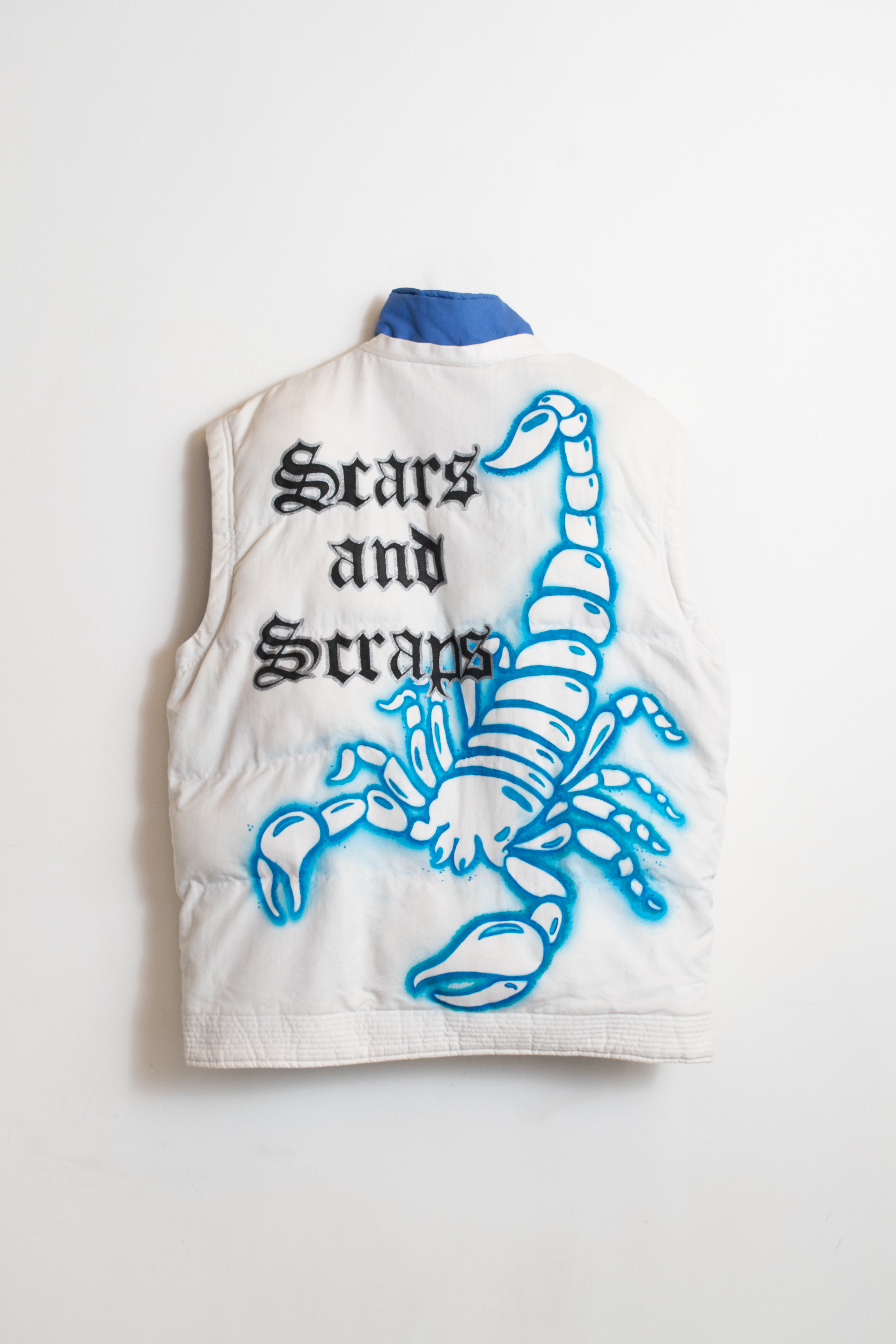 Chaleco puffer vintage Converse oversize intervenido en aerógrafo por la artista colombiana “María Paula Mojica” en laespalda.One of a kind, no replicas no repeats