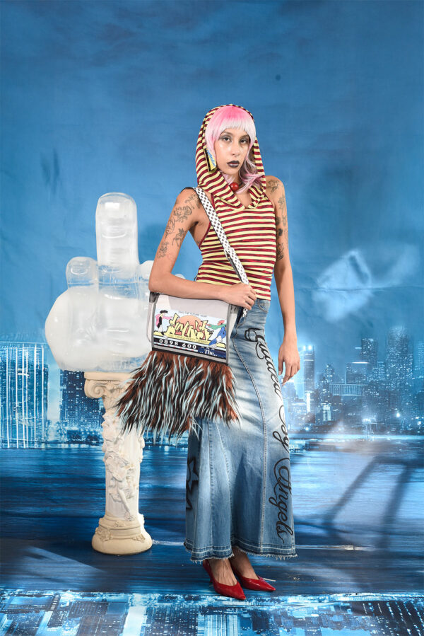 Maxi falda denim vintage intervenida en aerógrafo por la artista colombiana “María Paula Mojica”. One of a kind, no replicas no repeats