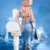 Maxi falda denim vintage intervenida en aerógrafo por la artista colombiana “María Paula Mojica”.