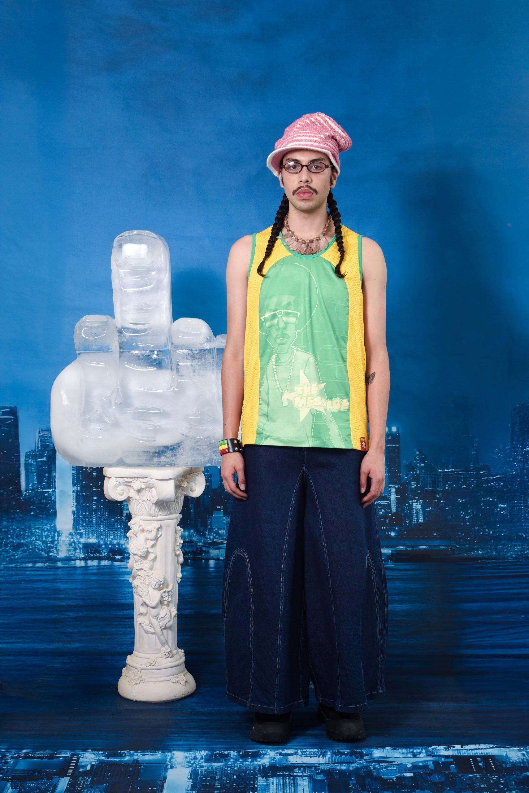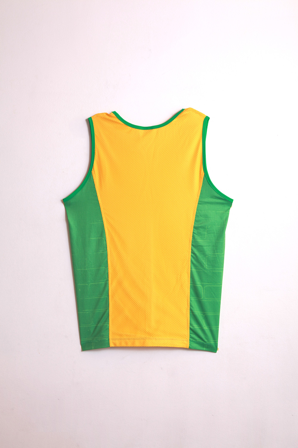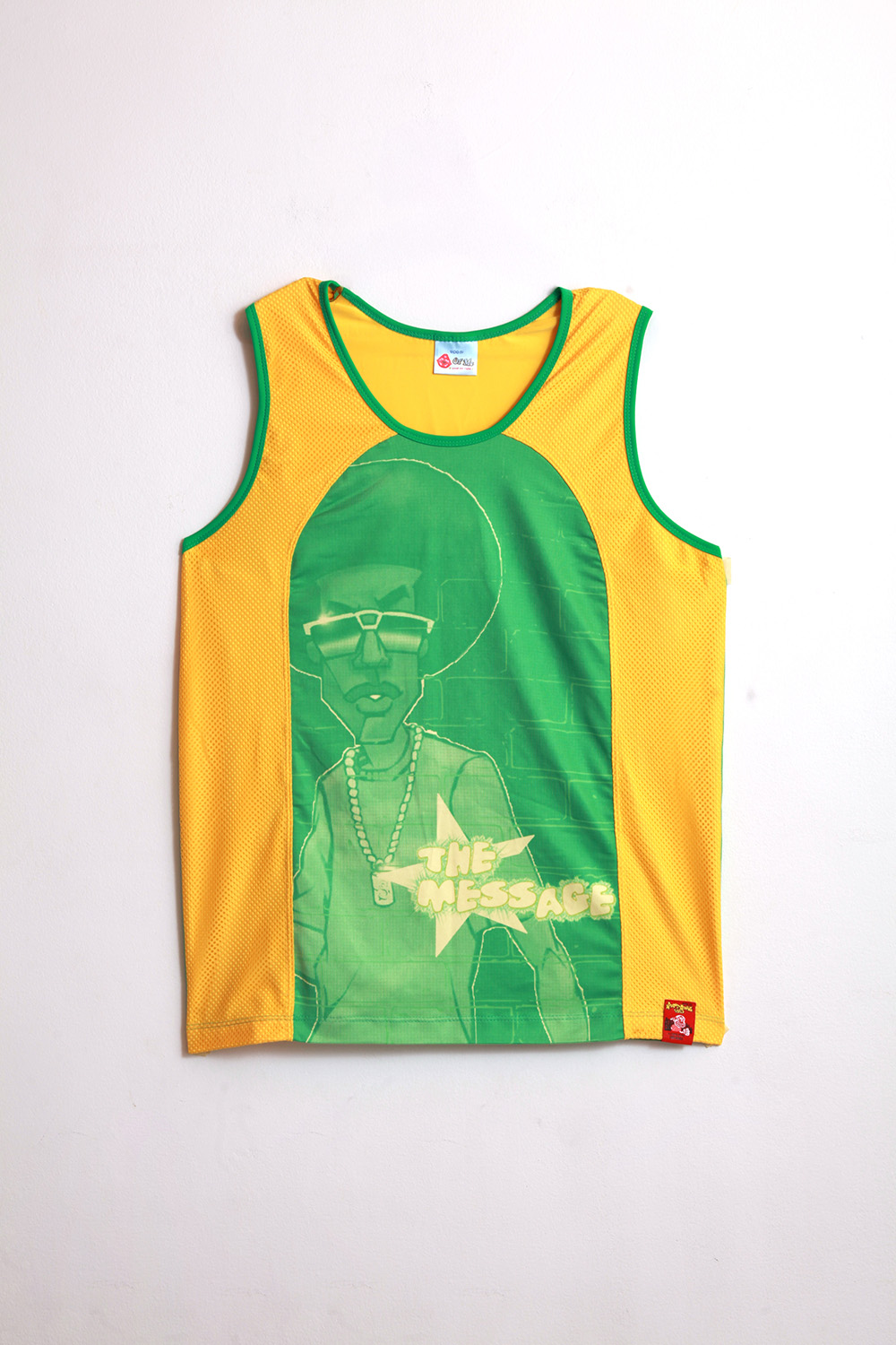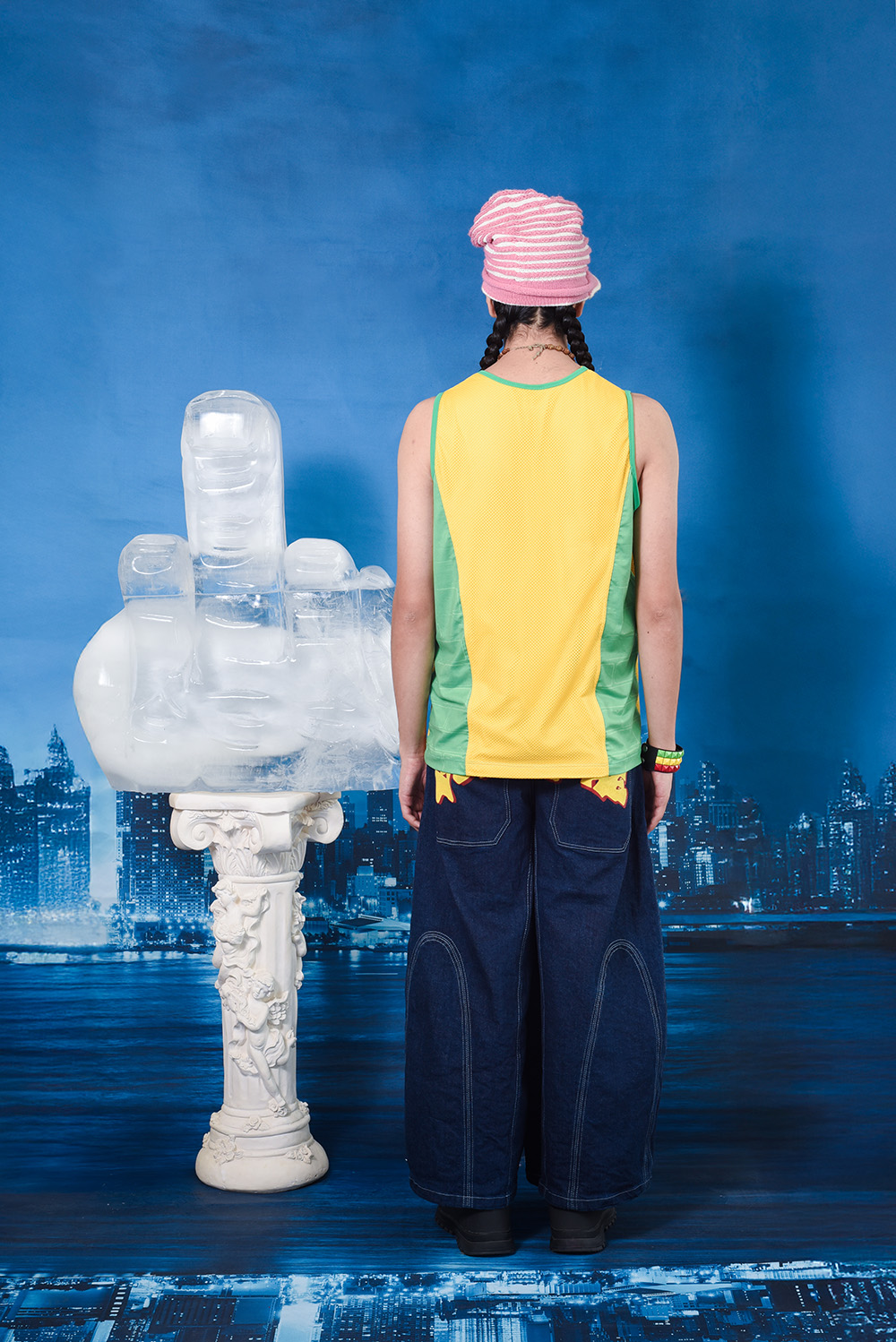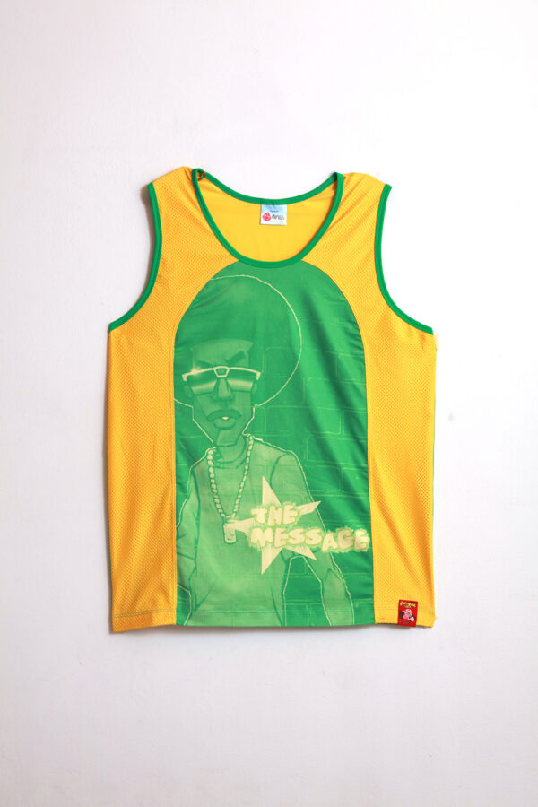Jersey oversized compuesto por lycra de algodón estampada y malla deportiva sobrepuesta en lycra dealgodón.