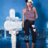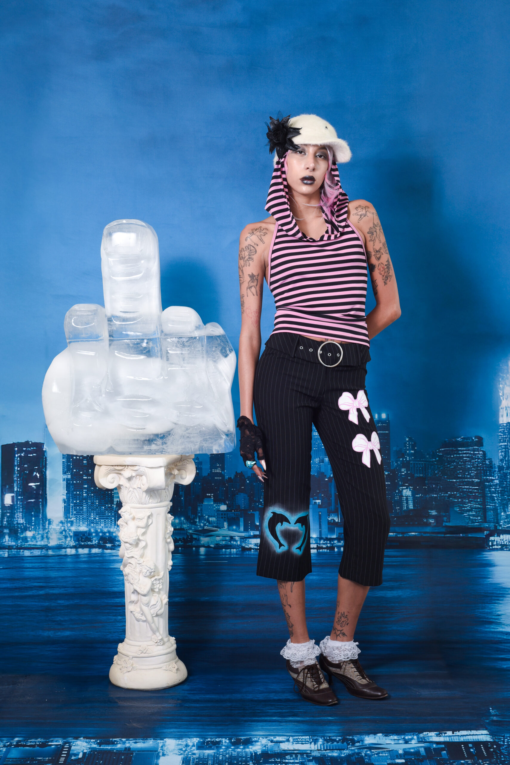 Capri negro con rayas blancas vintage con intervención a mano y aerógrafo por la artista colombiana