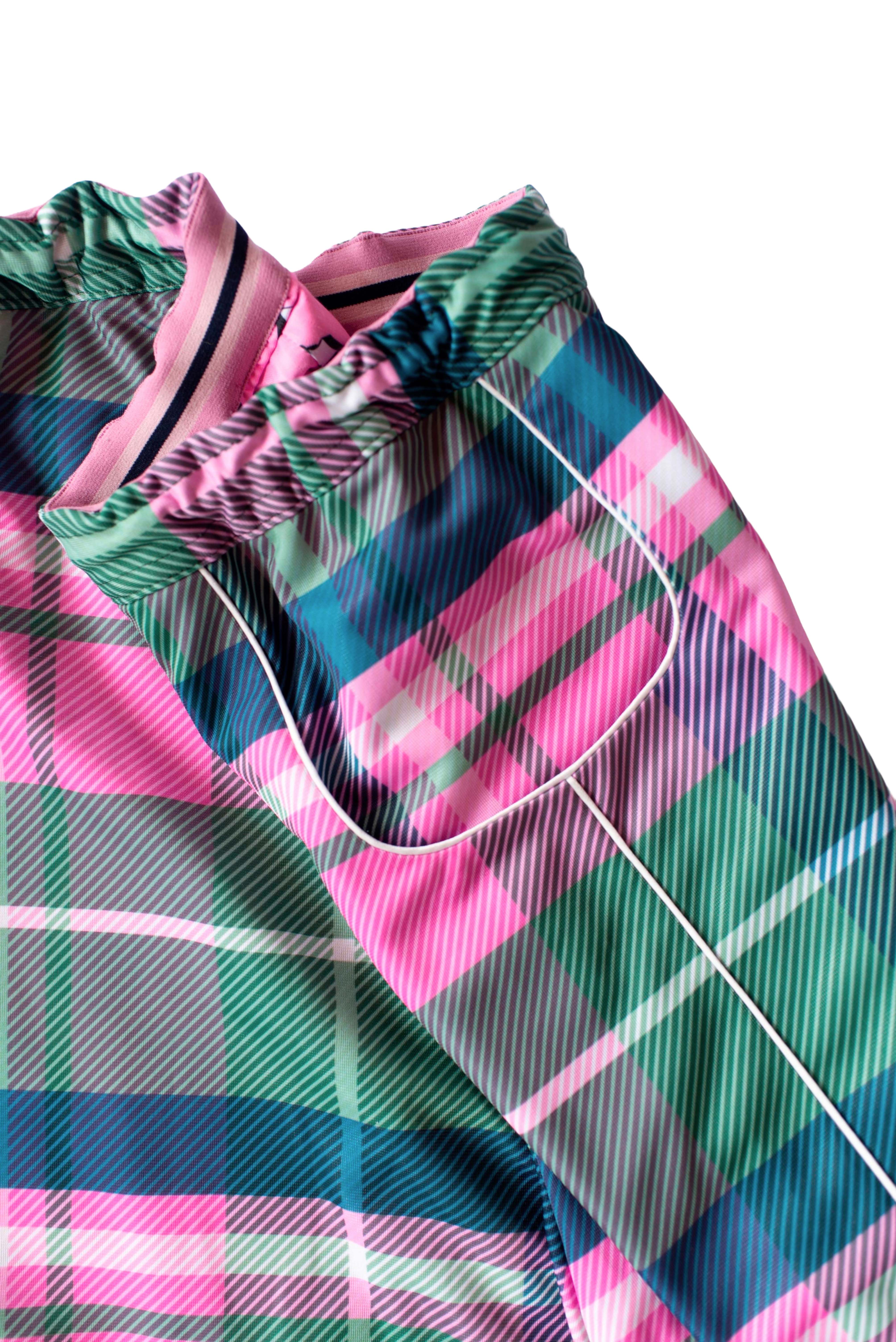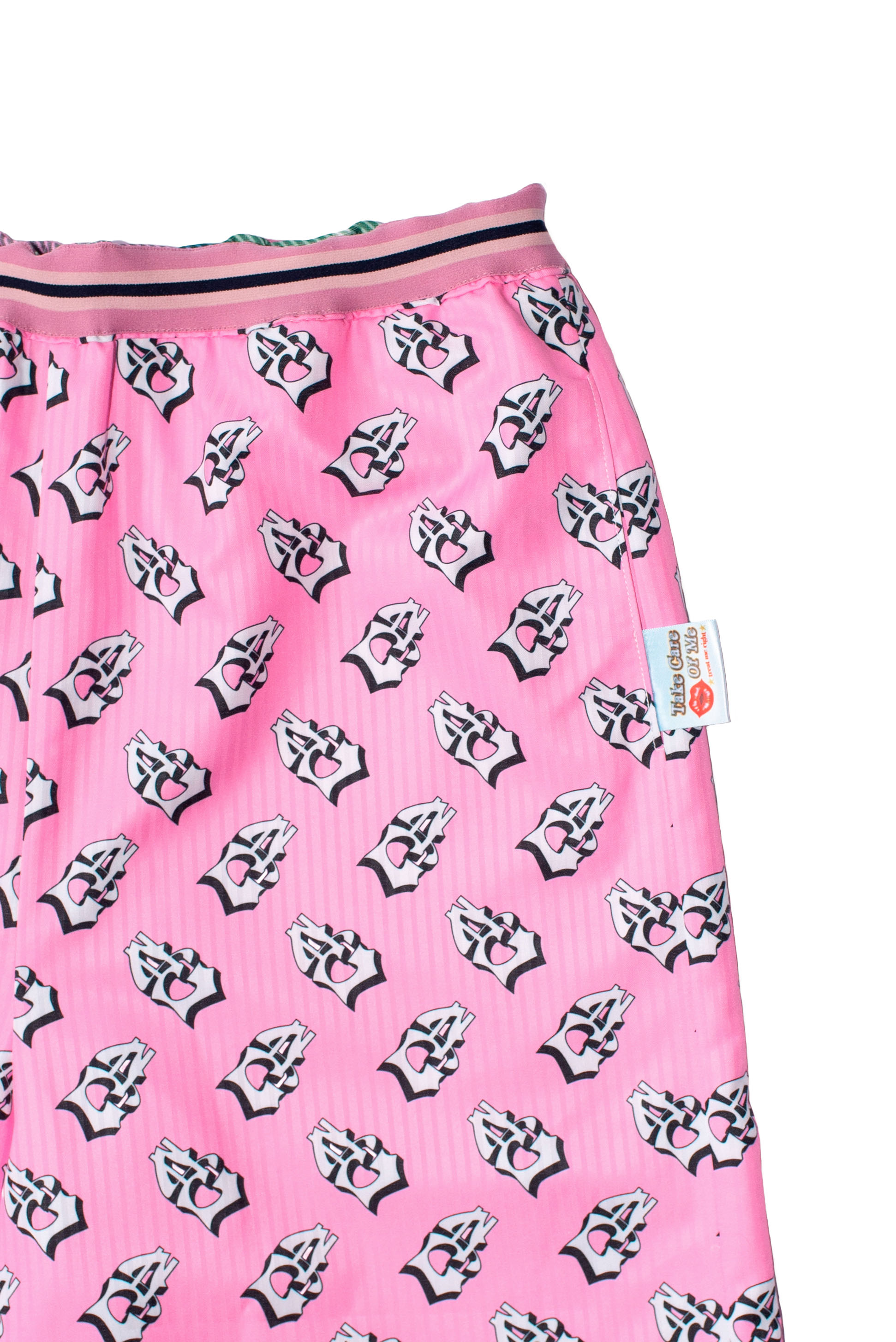 Pantalón doble faz y reversible en tartán y monograma SC, con bolsillos en ambos lados; ajuste con cordón de un lado y elástico del otro
