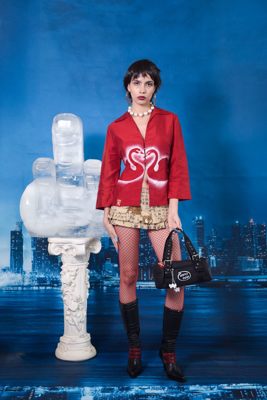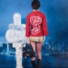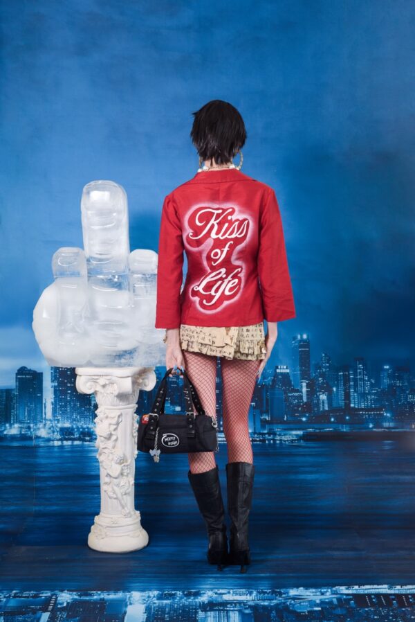 Top rojo con broches de corset intervenido en aerógrafo en parte delantera y posterior por la artista colombiana “María Paula Mojica”. One of a kind, no replicas, no repeats
