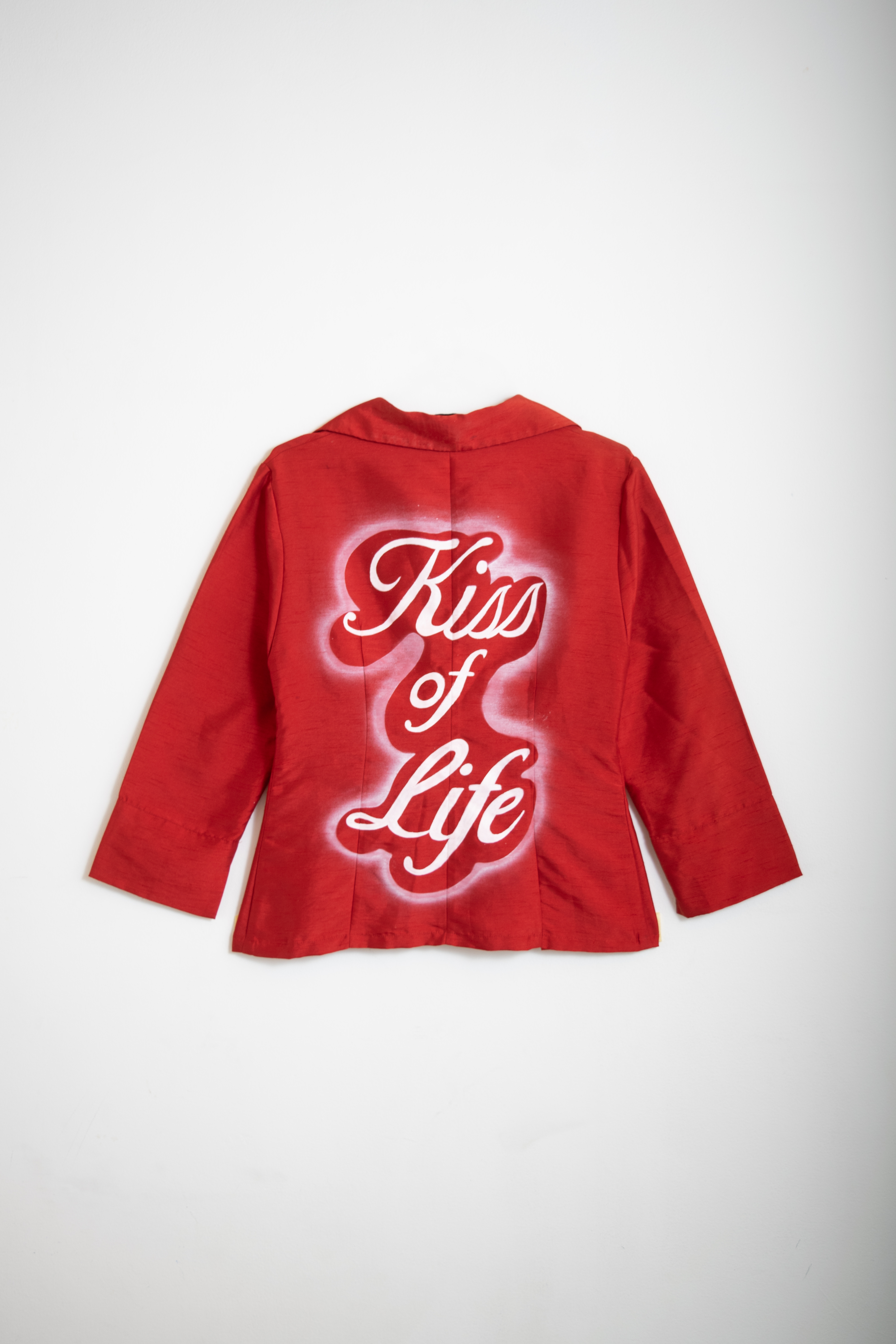Top rojo con broches de corset intervenido en aerógrafo en parte delantera y posterior por la artista